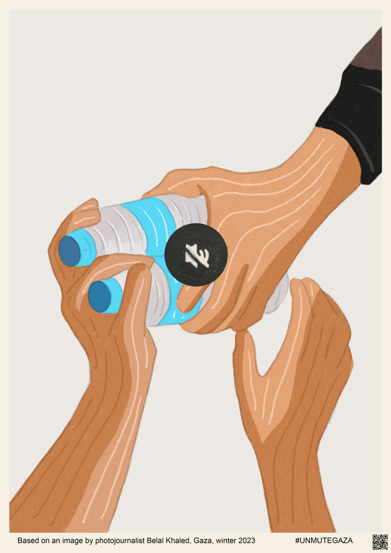 Ilustrasi #UnmuteGaza 2 oleh Ayuni Unzir.