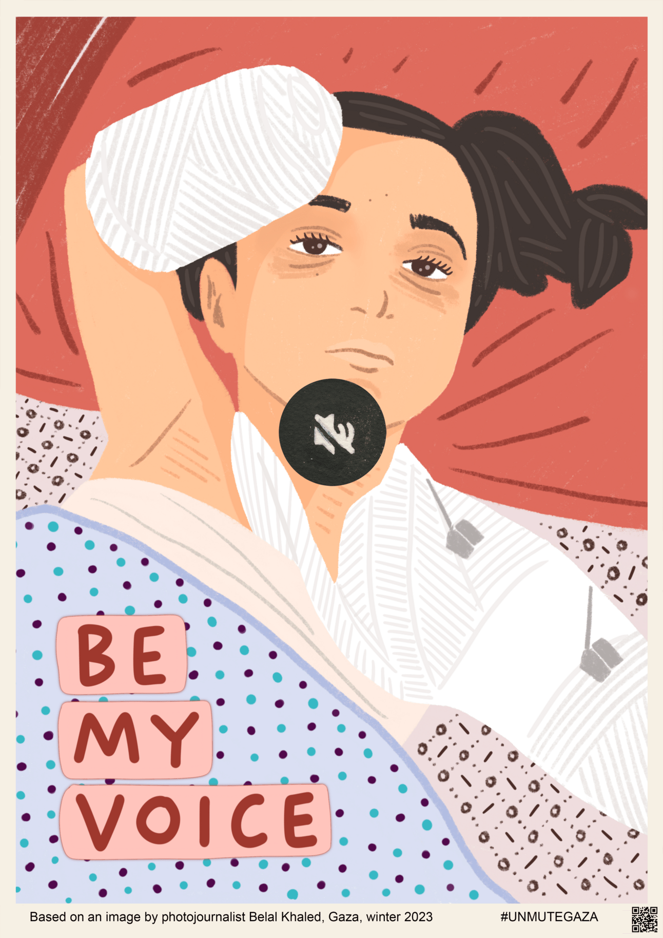 Ilustrasi #UnmuteGaza 1 oleh Ayuni Unzir.