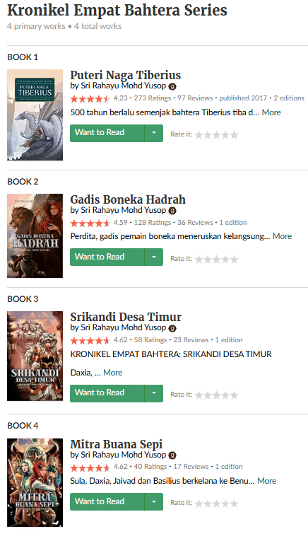 Kak Sri Rahayu telah mencipta dunia fantasi Kronikel Empat Bahtera yang dijadikan novel empat siri.